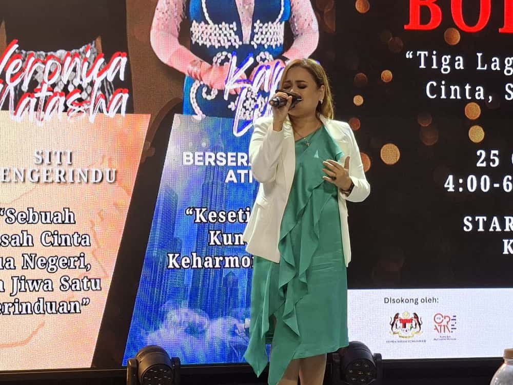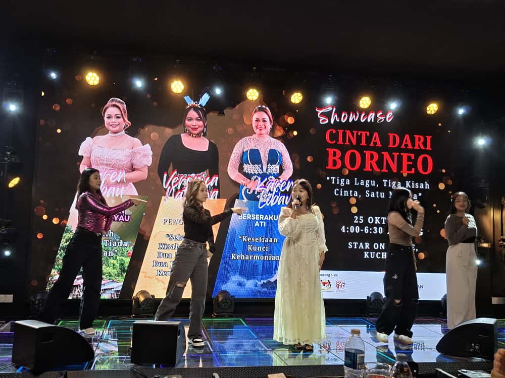 “Dua lagu dibawakan oleh penyanyi Iban terkenal, Karen Libau berjudul Meruan Dikesayau dan Beserakup Ati, manakala satu lagu disampaikan oleh penyanyi muda yang sedang meningkat naik, Veronica Natasha berjudul Siti Pengerindu,” kata Gibson pada ‘Showcase Cinta Dari Borneo’ di Star On Stage di sini, hari ini.