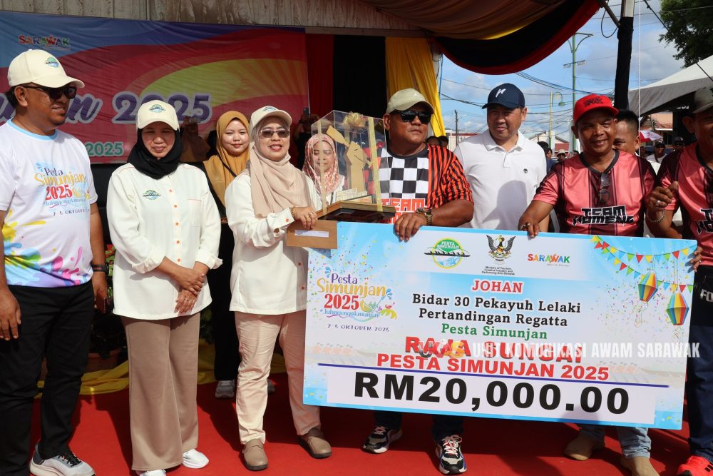 Sesi penyampaian hadiah telah disempurnakan oleh Pegawai Daerah Simunjan, Sanuyah Mohamad, yang turut dihadiri Ahli Dewan Undangan Negeri (ADUN) Simunjan Awla Dris pada Ahad.