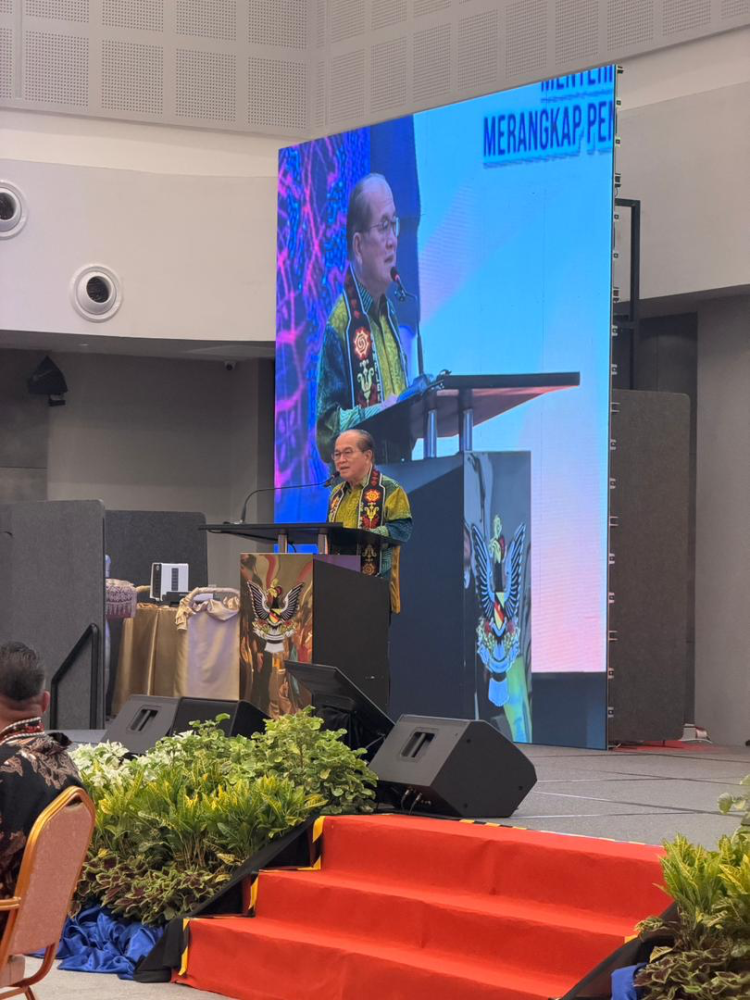 DATUK Amar Douglas Uggah Embas berucap pada Majlis Perasmian Kompleks UNIFOR, Kuching. Foto: Nadya Victoria
