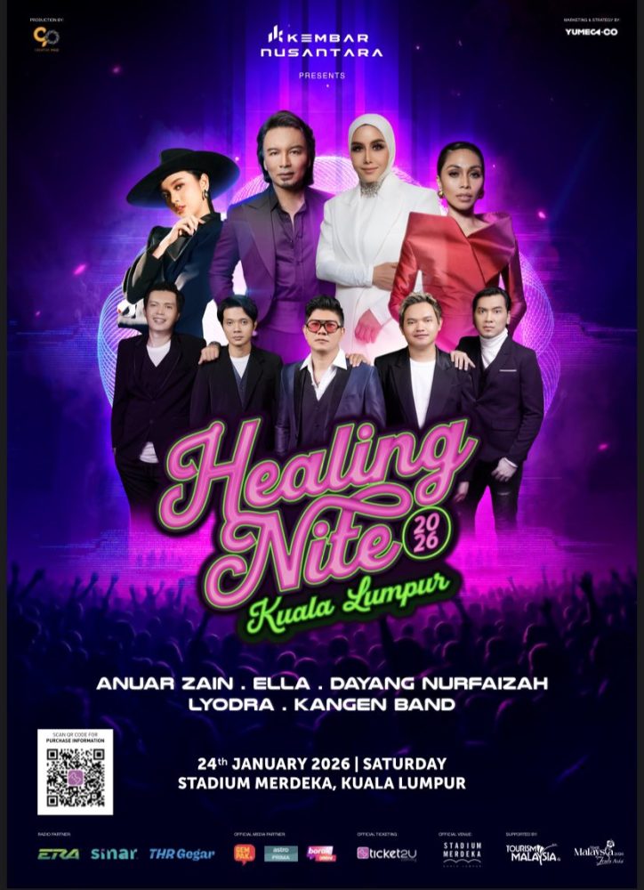 KUALA LUMPUR: Lima artis terkenal dari Malaysia dan Indonesia bakal berkongsi pentas menerusi Konsert Healing Night 2026 di Stadium Merdeka di sini pada 24 Jan depan.