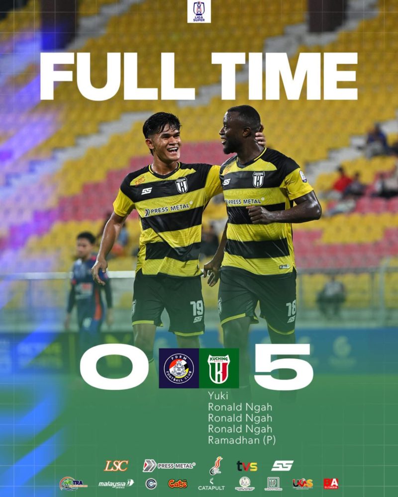 KUALA LUMPUR: Kuching City FC (KCFC) berpesta gol di Stadium Selayang, Selangor dengan membelasah PDRM FC, 5-0 dalam saingan Liga Super 2025/2026 hari ini.
