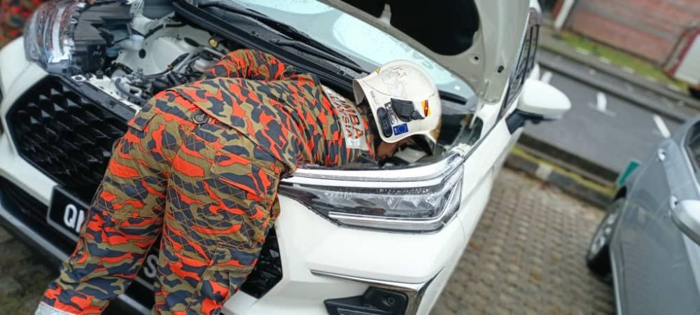 Kejadian berlaku sekitar 3.00 petang apabila pemilik kereta menyedari haiwan tersebut tidak dapat keluar dari bahagian hadapan kenderaan lalu menghubungi bomba untuk bantuan.