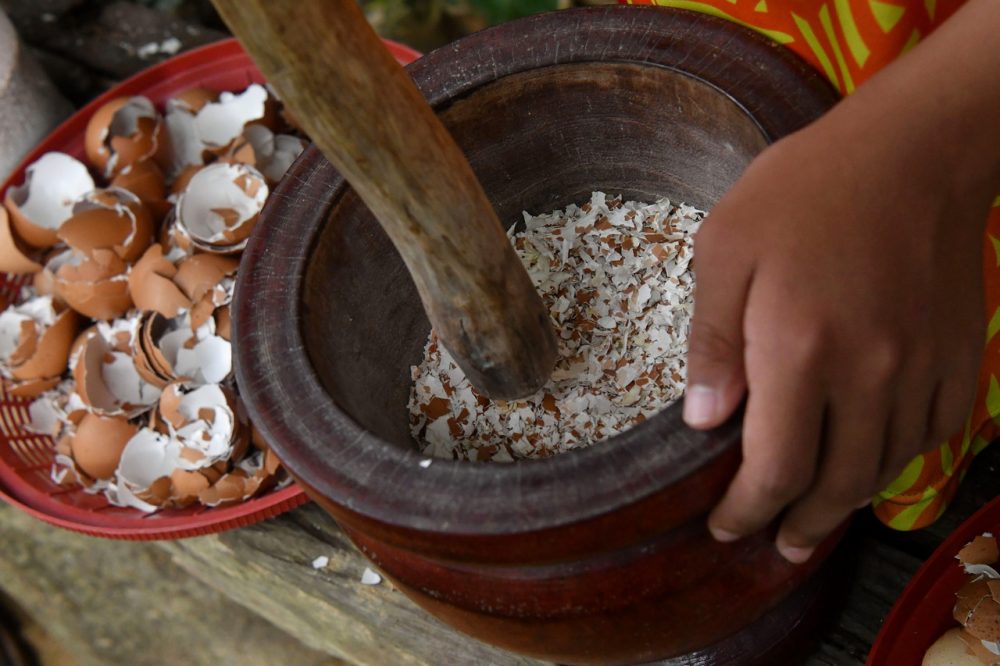 Beliau berkata hingga kini, lebih 1,100 kilogram kulit telur telah dikumpulkan hasil sumbangan sekolah, kediaman persendirian, restoran dan hotel, yang akan dikeringkan terlebih dahulu sebelum digunakan.