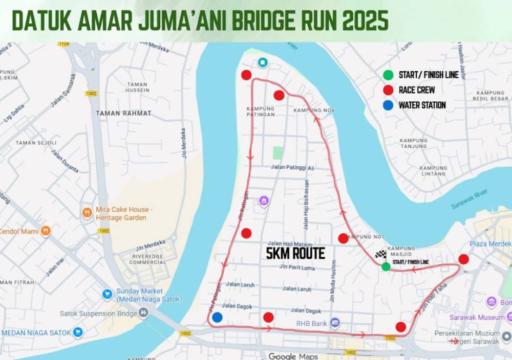 “Larian bagi kategori 5km bermula di Jambatan Datuk Amar Juma’ani akan melalui laluan utama yang merentasi Kampung No.1, Kampung Patingan, dan Kampung No.6, menawarkan pengalaman larian yang menarik melalui suasana kampung,” katanya.