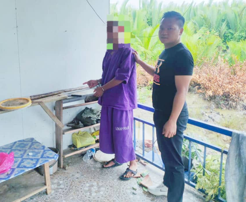 Bertindak atas laporan dibuat di Balai Polis Kabong, sepasukan anggota polis diketuai Inspektor Hendry menahan suspek di hadapan rumah berkenaan pada 5 Disember.