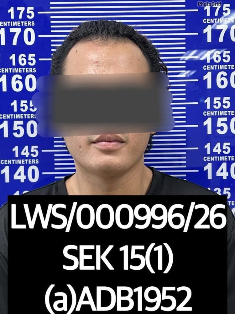 Kata Liong,  hasil ujian saringan air kencing mendapati suspek positif dadah jenis amphetamine dan methamphetamine dan semakan kesalahan lampau mendapati suspek mempunyai satu kesalahan lampau berkaitan dadah.