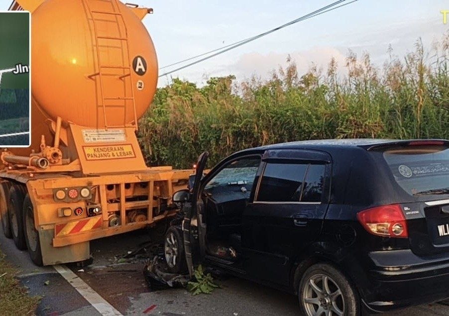 “Sebaik tiba di lokasi, didapati kemalangan melibatkan sebuah kenderaan jenis Hyundai merempuh treler rosak yang diparkir di bahu jalan.