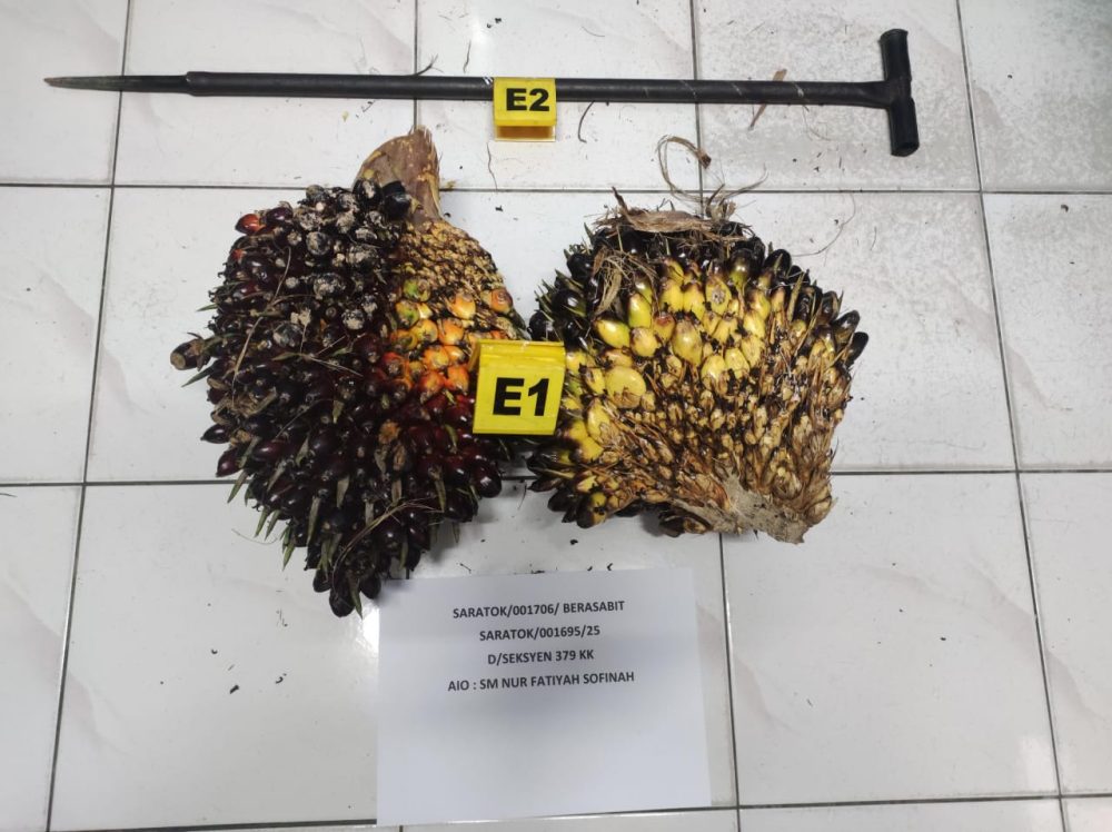 “Hasil tangkapan membawa kepada rampasan beberapa barangan termasuk sebuah kenderaan pacuan empat roda jenis Toyota Hilux, dua tandan buah sawit, batang besi ‘loading spike’, dan resit baucar bayaran jualan sawit daripada sebuah syarikat tempatan atas nama suspek,” katanya dalam satu kenyataan hari ini.