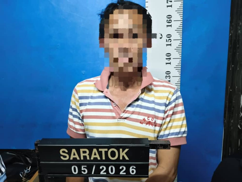 Bertindak atas maklumat dan siasatan lanjut, sepasukan anggota BSJD IPD Saratok yang diketuai Inspektor Hendry berjaya menahan seorang lelaki tempatan berusia 48 tahun.