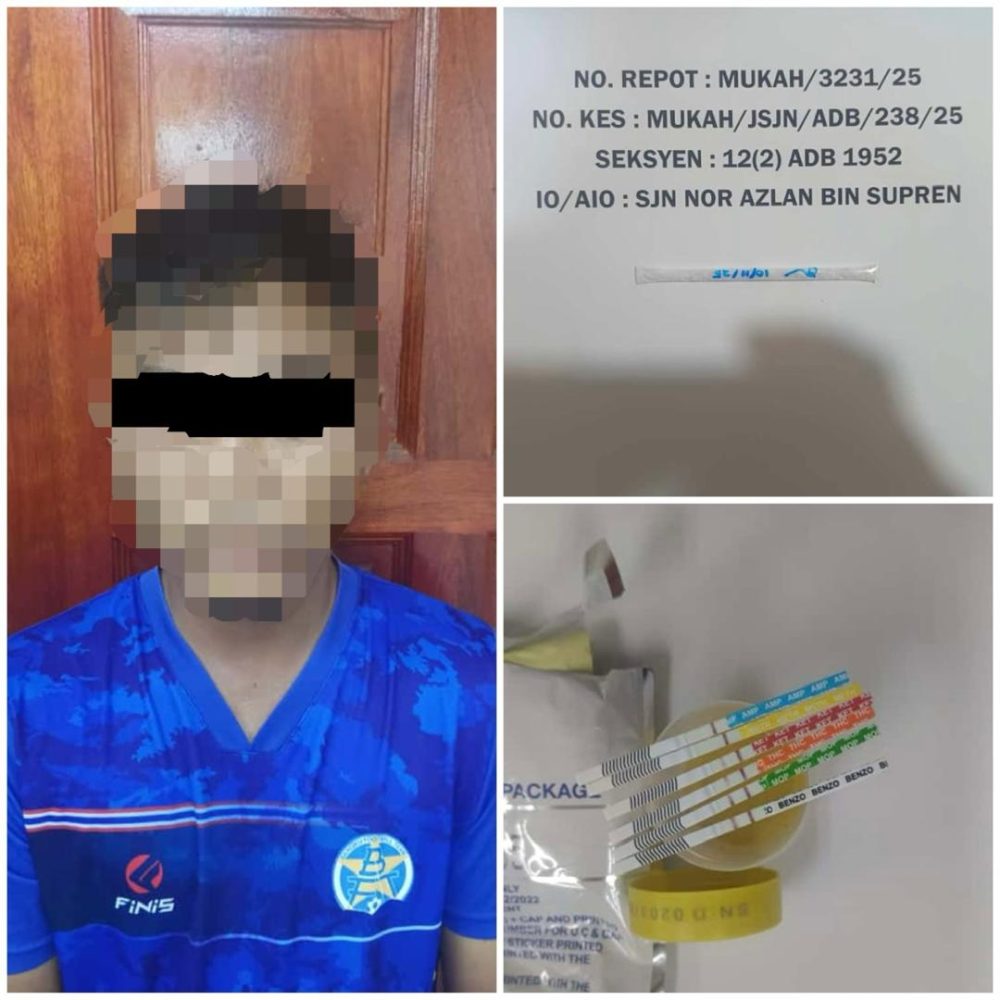Beliau berkata, suspek dan barang kes dibawa ke IPD Mukah untuk tindakan lanjut, manakala ujian air kencing terhadap suspek mendapati dia positif dadah jenis amphetamine dan methamphetamine.