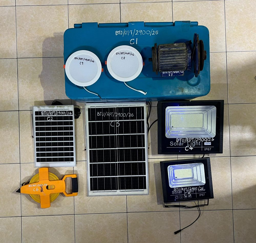 Turut dirampas, beberapa barangan dipercayai hasil curi termasuk panel solar, lampu solar, motor pam air serta pelbagai peralatan pertukangan di sebuah bilik tidak bernombor di kawasan Kemena Land District.