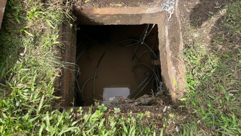 PENUTUP lubang pembetung dibuka dan kabel dirampas.