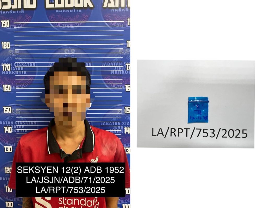 Siasatan mendapati lelaki terbabit mempunyai rekod jenayah lampau berkaitan kesalahan narkotik. Kes disiasat di bawah Seksyen 12(2) Akta Dadah Berbahaya 1952.