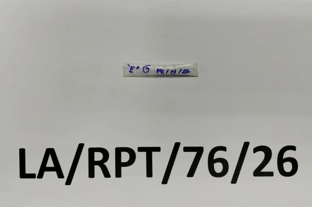 Hasil pemeriksaan mendapati polis menemukan satu paket plastik lutsinar berisi ketulan kristal disyaki dadah jenis Methamphetamine dengan anggaran berat 0.27 gram.