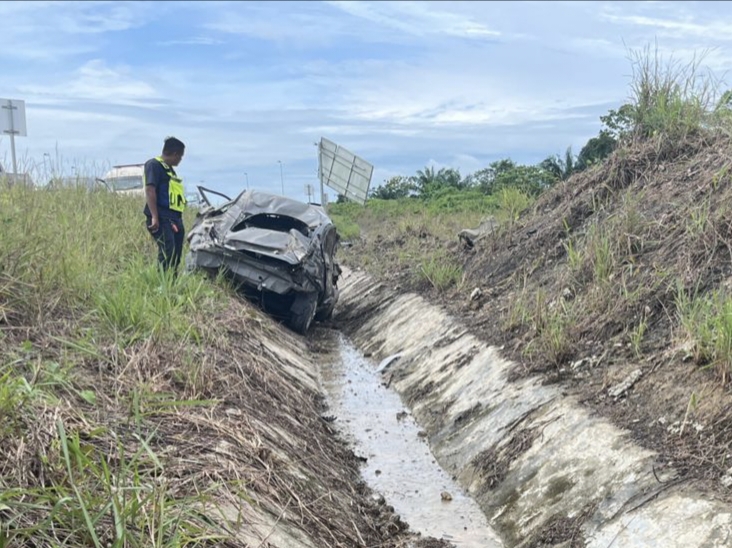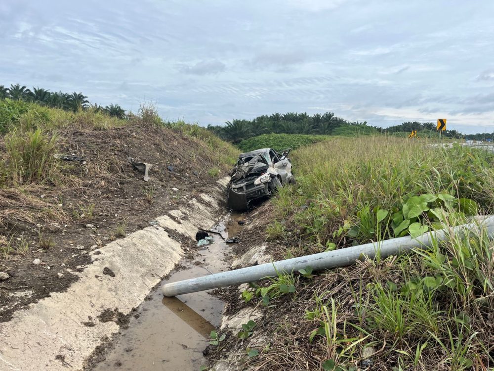 “Setibanya di lokasi kejadian, kenderaan yang dipandu mangsa dipercayai hilang kawalan sebelum terbabas dan melanggar tiang papan tanda jalan.
