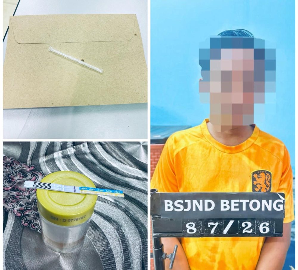 Ketua Polis Daerah Betong, DSP Wan Mohamad Ali Wan Malek mengesahkan tangkapan itu dibuat kira-kira 1.30 tengah hari selepas suspek dipercayai memiliki dadah serta disyaki terlibat dalam kegiatan penyalahgunaan dadah.