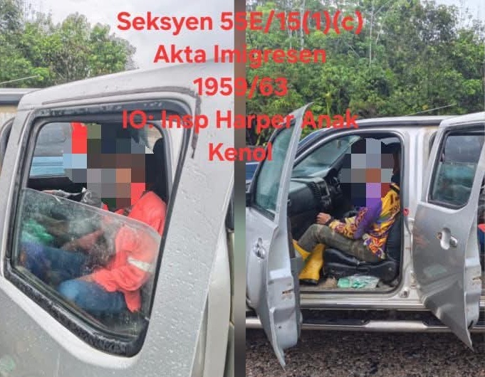 Hasil pemeriksaan mendapati seorang lelaki tempatan sedang membawa tiga lelaki warganegara asing menggunakan kenderaan berkenaan bagi tujuan bekerja di kawasan sekitar Engkilili.