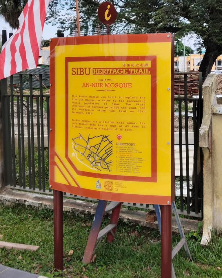 PAPAN tanda Masjid An-Nur (kiri) dan Masjid Lama Sibu (Masjid Al-Qadim).