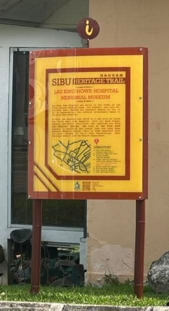 PAPAN tanda Muzium Memorial Hospital Lau King Howe (kiri) dan Pusat Warisan Sibu (kanan).