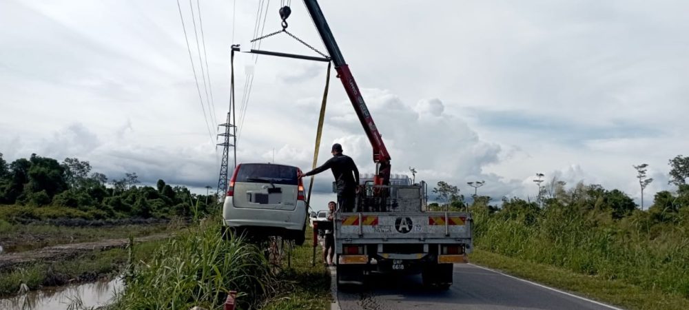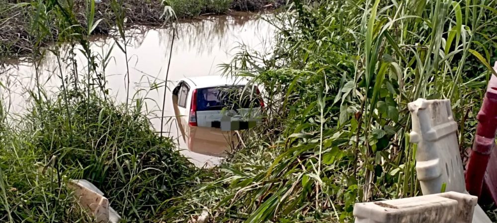 MARUDI: Lima sekeluarga terselamat apabila kereta terjunam ke dalam parit pada pukul 2.30 petang tadi, di Jalan Marudi-Mairi, kira-kira 300 meter dari Jambatan Marudi.