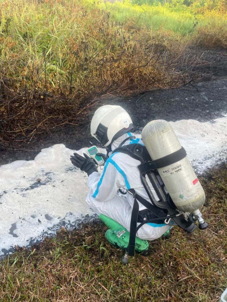 Beliau berkata, pasukan bomba bertindak menggunakan peralatan perlindungan diri (PPE) penuh dan melaksanakan pemadaman dari jarak selamat menggunakan pancutan air dan buih, kawasan kejadian turut dikawal bagi memastikan keselamatan awam.