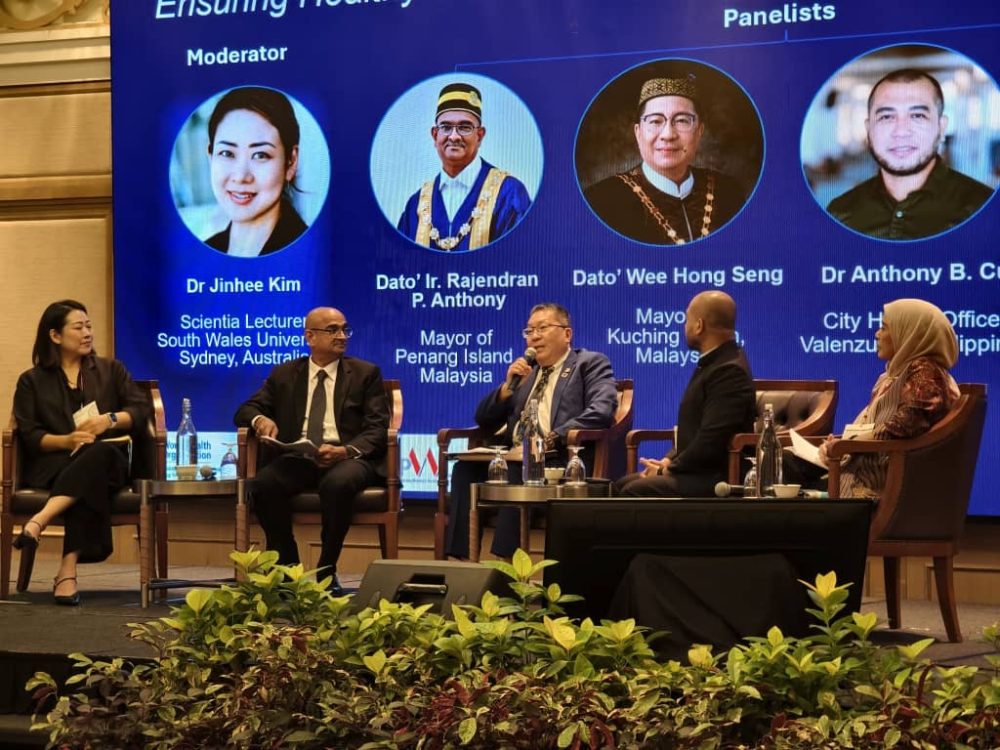 BANDAR SIHAT… Datuk Bandar MBKS, Dato Wee Hong Seng, berkongsi pengalaman Kuching dalam memperkukuh sokongan warga emas semasa sesi panel WHO di Penang.