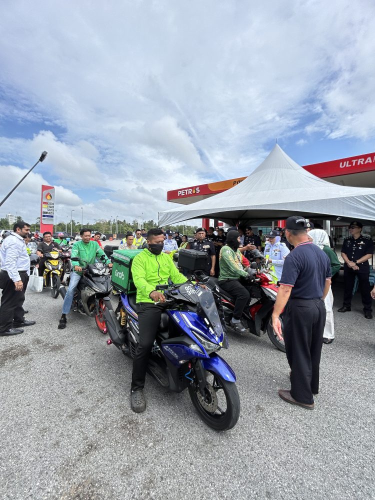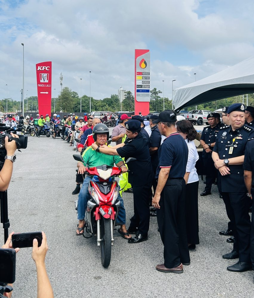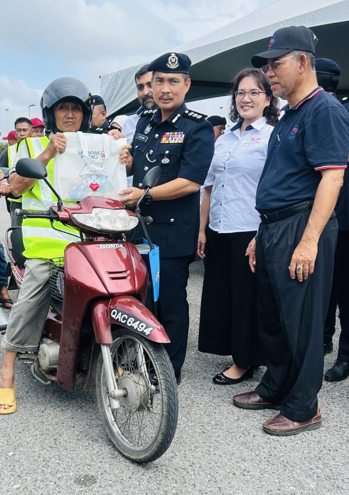 Program tersebut turut menyaksikan penyerahan topi keledar kepada pengguna motosikal sebagai usaha meningkatkan kesedaran keselamatan jalan raya dalam kalangan masyarakat.