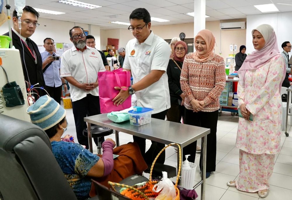 Selepas majlis penyerahan, para tetamu melawat wad dialisis hospital berkenaan dan mengagihkan beg cenderahati kepada pesakit sebagai tanda sokongan serta menyemarakkan suasana perayaan.