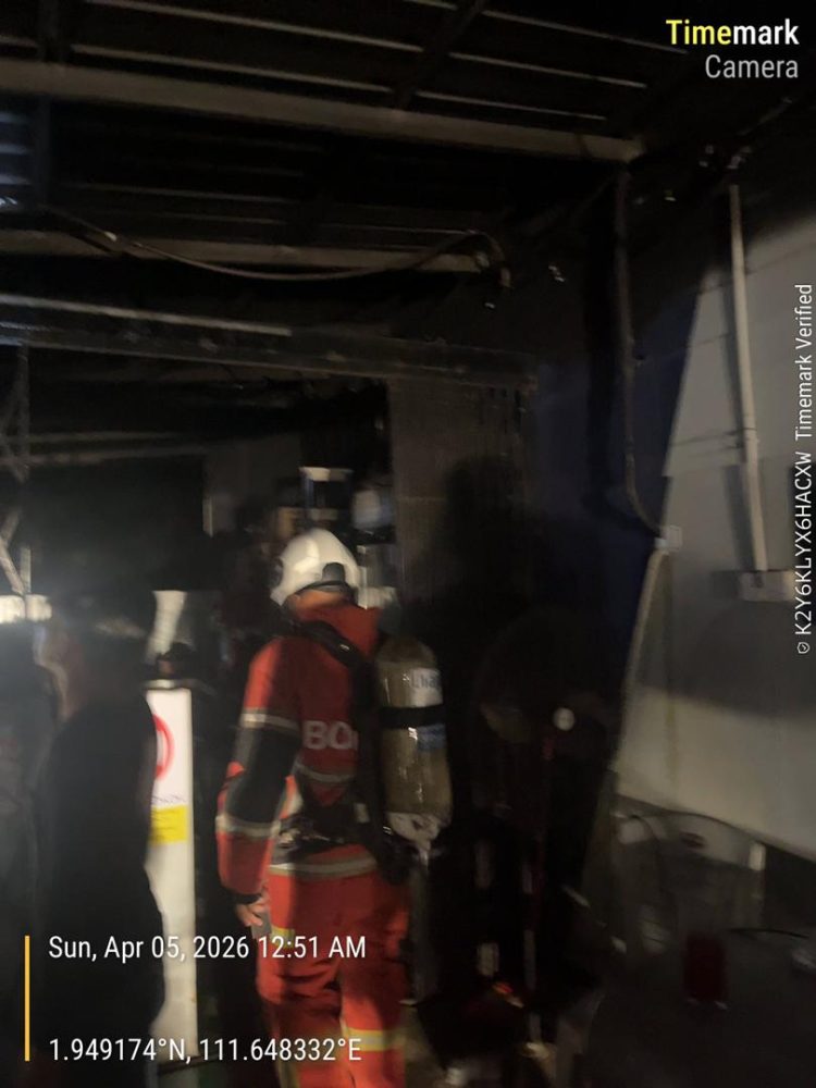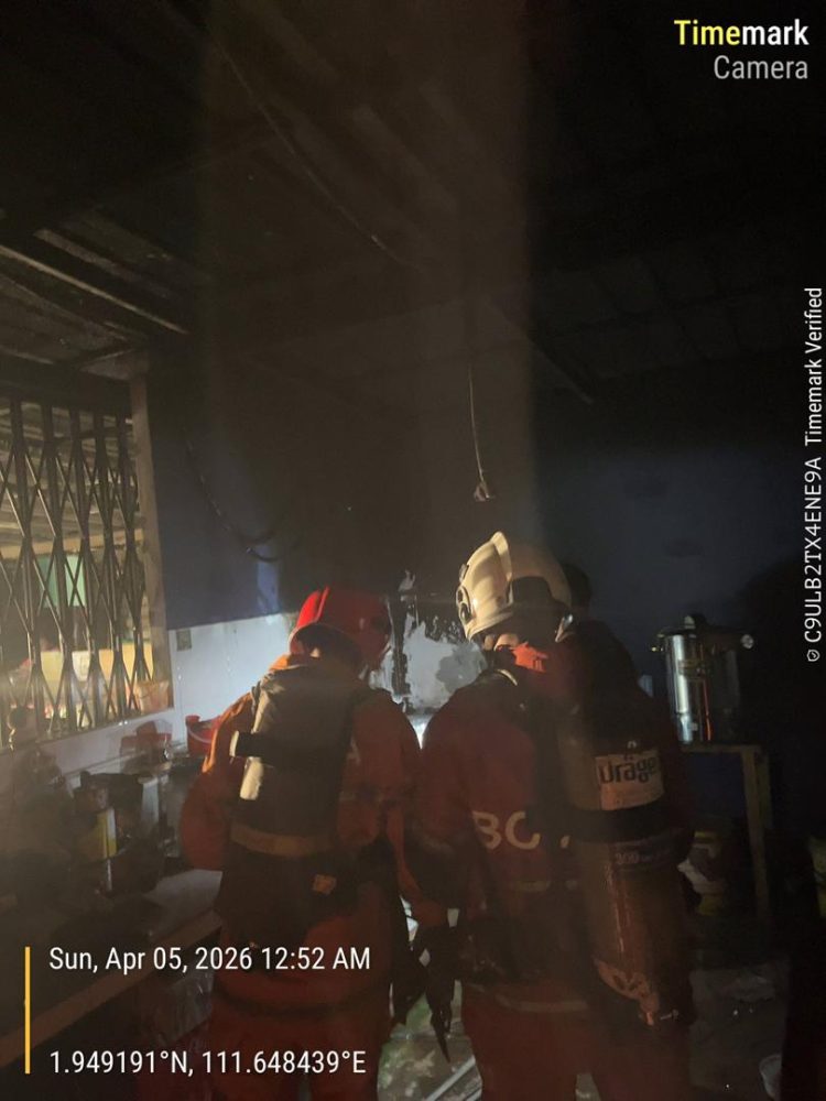 “Respons dengan panggilan kecemasan, sepasukan bomba diketuai oleh Pegawai Bomba Kanan (PBK) II Khadijah Sarakawi bergegas ke lokasi.