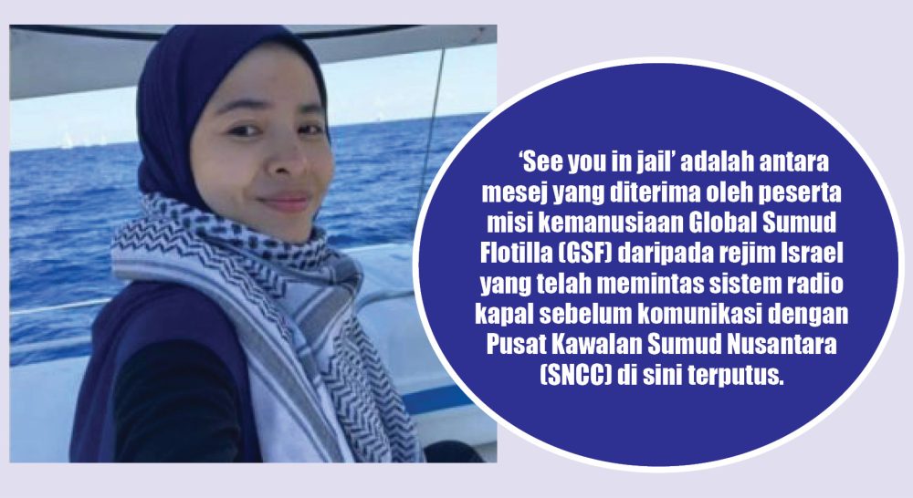 SEPANG: ‘See you in jail’ adalah antara mesej yang diterima oleh peserta misi kemanusiaan Global Sumud Flotilla (GSF) daripada rejim Israel yang telah memintas sistem radio kapal sebelum komunikasi dengan Pusat Kawalan Sumud Nusantara (SNCC) di sini terputus.