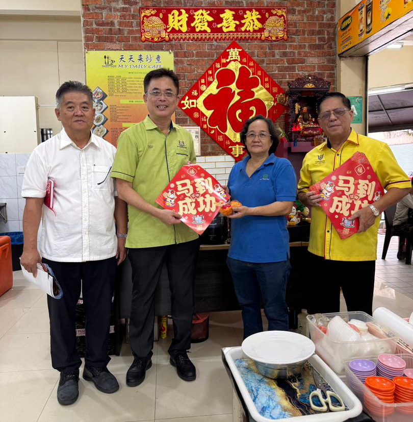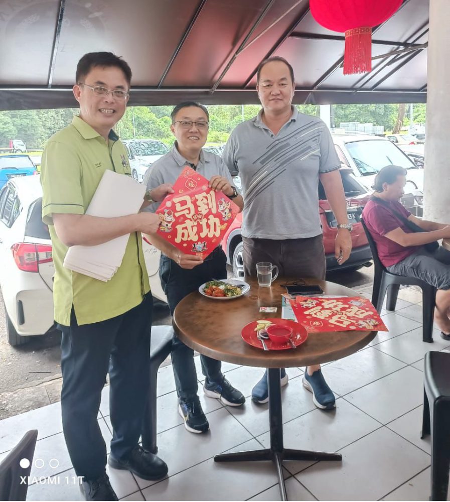 PENGERUSI MPP, Tan Kai terus mengedarkan pelekat Tahun Baharu Cina.