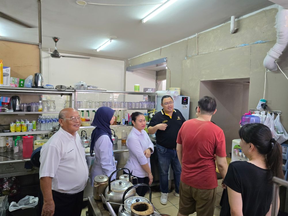 MPS….Ketika menjalankan pemeriksaan kebersihan kedai kopi di sekitar kawasan Pasar Malam Sibu, hari ini.