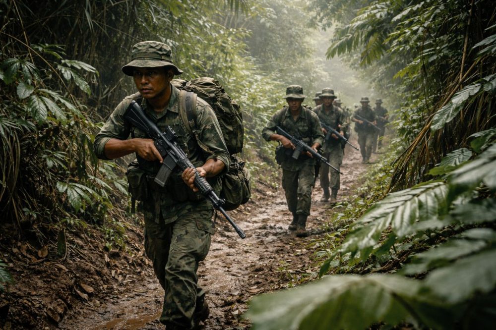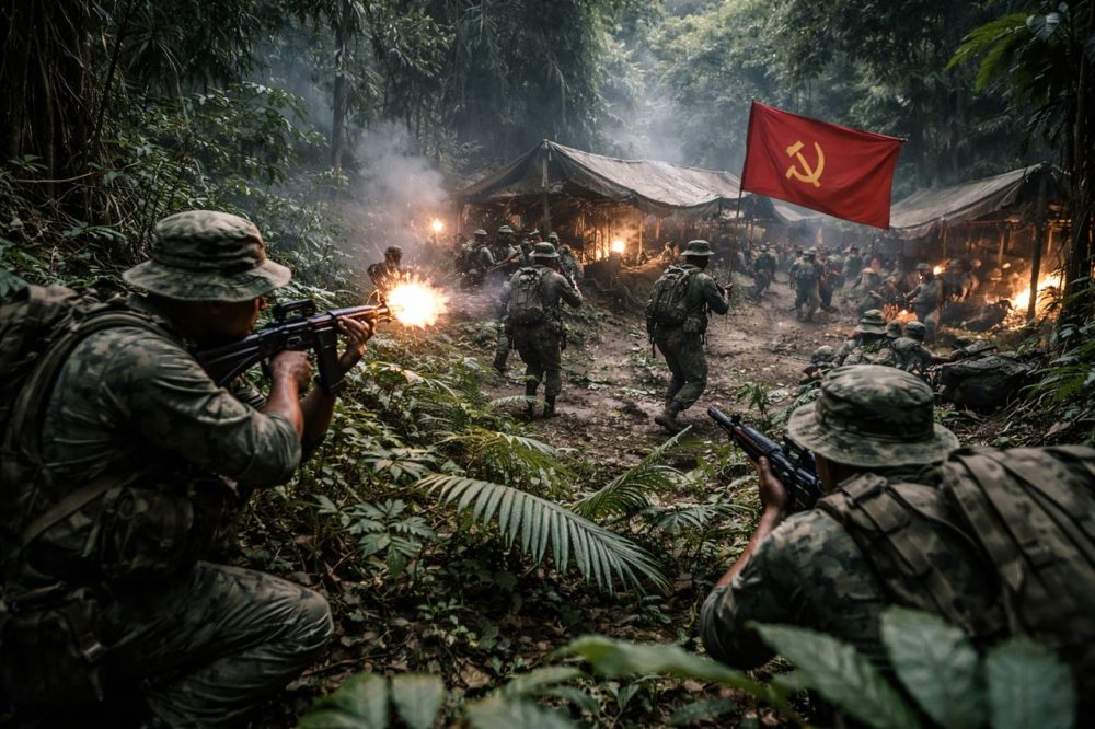SERBUAN hendap dalam hutan ketika Operasi Bebatak. Foto gambaran AI