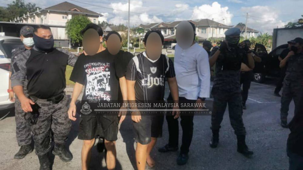 Kesemua individu yang ditahan dibawa ke Pejabat Imigresen Kuching untuk siasatan lanjut.