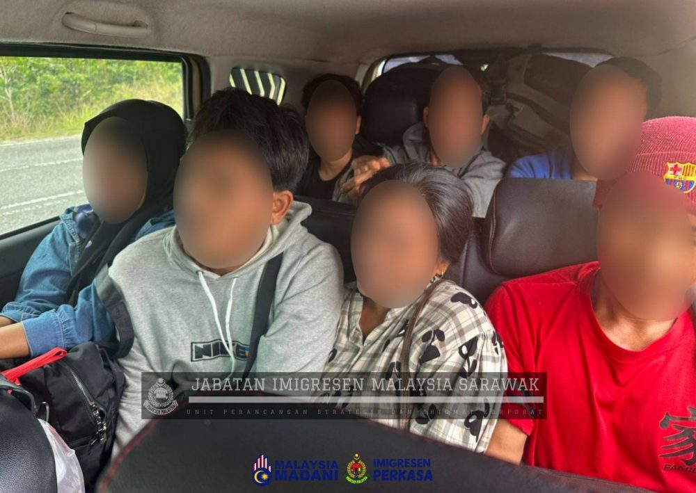 JIM Sarawak memaklumkan dua kenderaan terbabit turut disita manakala kes disiasat mengikut Seksyen 26A Akta Antipemerdagangan Orang dan Penyeludupan Migran 2007 serta Seksyen 5(1), 6(1)(c) dan 15(1)(c) Akta Imigresen 1959/63.