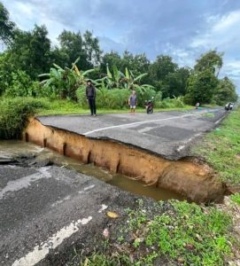 PERHATIAN…Penduduk diingatkan supaya berhati-hati ketika melalui kawasan jalan runtuh di Bawang Assan berikutan risiko keselamatan. Facebook Kevin...