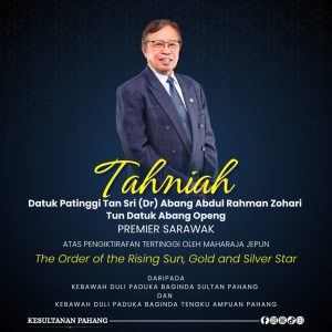 KUANTAN: Sultan Pahang Al-Sultan Abdullah Ri’ayatuddin Al-Mustafa Billah Shah menzahirkan ucapan tahniah kepada Premier Sarawak Datuk Patinggi...