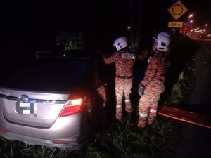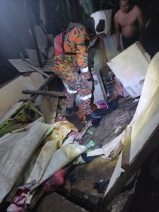 ANGGOTA bomba dari Balai Bomba dan Penyelamat Siburan berusaha mengeluarkan mangsa yang tersepit. Foto PGO Bomba Sarawak KUCHING:...