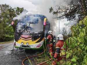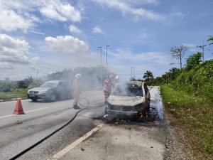 BEKENU: Dua lelaki dewasa terselamat selepas kereta dinaiki mereka terbakar dalam kejadian di Kampung Subak Bekenu, Batu...