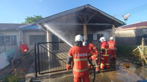 KUCHING: Kepulan asap yang dilihat keluar dari sebuah rumah tidak berpenghuni di Lorong 2C, Taman Palma Indah...