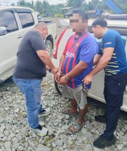 MUKAH: Polis menahan seorang lelaki warga tempatan di hadapan sebuah rumah pekerja syarikat pengangkutan di Jalan Jebungan,...