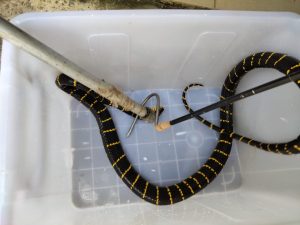 Anggota APM Spaoh berjaya menangkap seekor ular cincin emas sepanjang kira-kira lima kaki yang ditemui di atas...