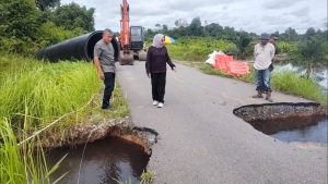 BEKENU: Jalan Kampung Tiris yang rosak dan runtuh hampir dua bulan sehingga tidak dapat dilalui kenderaan sejak...