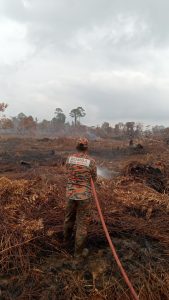 BELADIN: Kebakaran kebun sawit seluas enam hektar di Sungai Beras Beladin, Jalan Maludam, Pusa, di sini berjaya...
