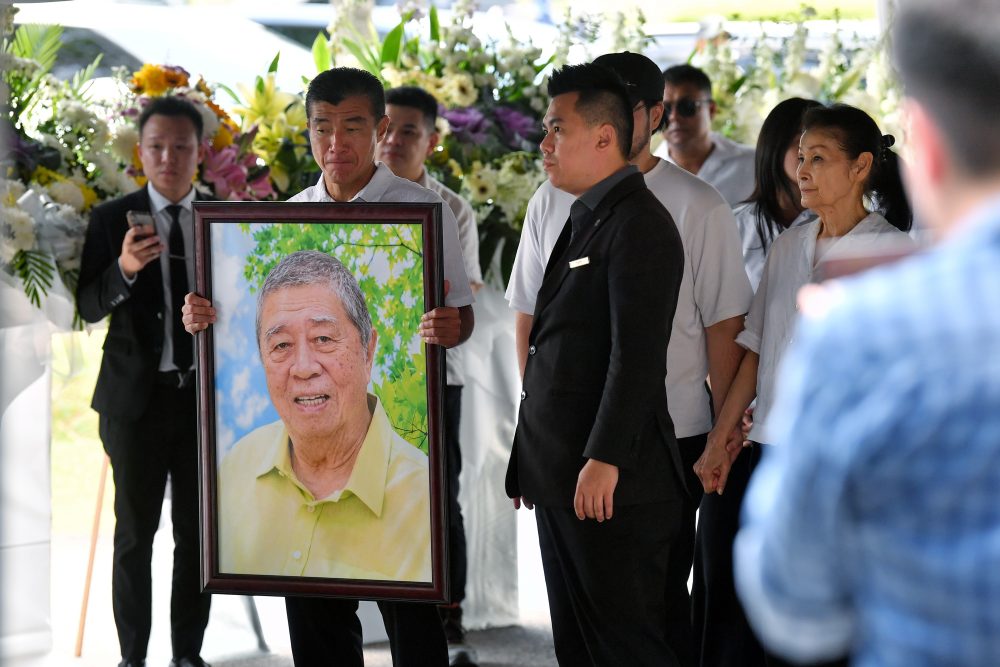 NILAI: Jasad mendiang bekas Menteri Pengangkutan yang juga Presiden Kehormat Seluruh Hidup MCA Tun Dr Ling Liong...