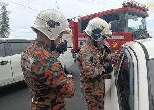 MIRI: Tindakan pantas anggota Balai Bomba dan Penyelamat (BBP) Lutong membantu seorang wanita yang berdepan situasi cemas...