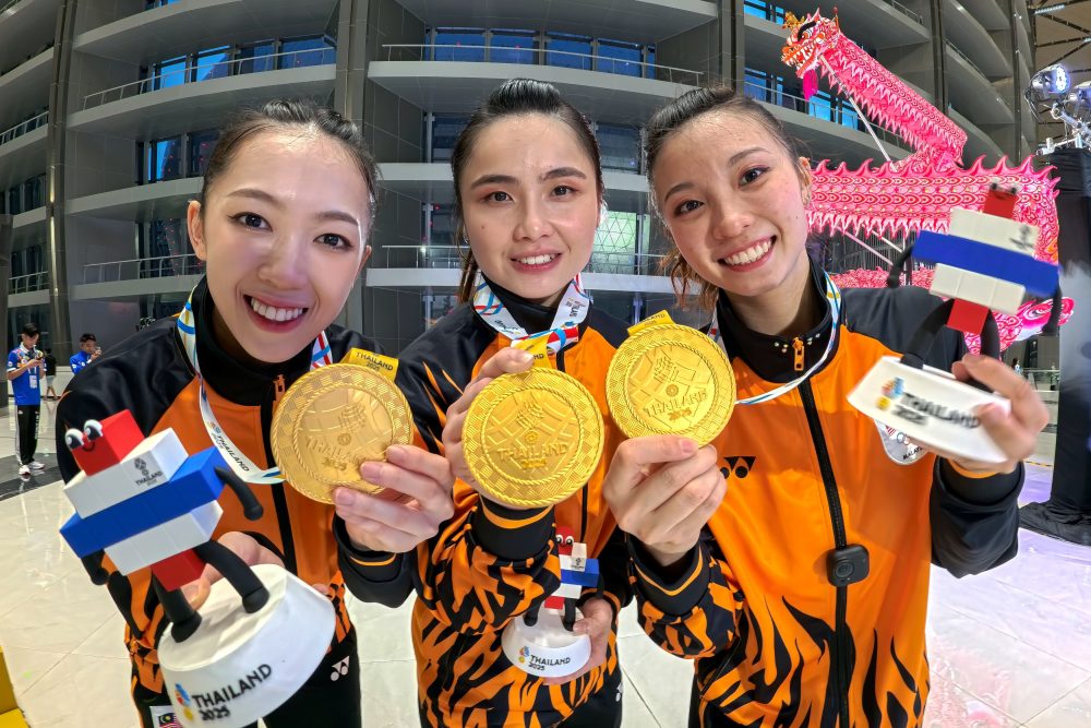 BANGKOK: Trio wusyu wanita negara Lo Ying Ting, Mandy Cebelle Chen dan Sydney Chin Sy Xuan mencipta...
