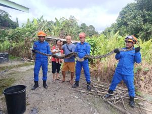 SARATOK: Seekor ular sawa sepanjang lebih 3.3 meter mencetuskan kebimbangan penduduk apabila ditemui bersembunyi di reban ayam...