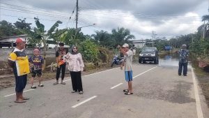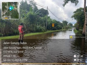 BATU NIAH: Keadaan banjir kilat di Kampung Tanjung Belipat menurun manakala jalan raya menuju ke Kampung Kuala...