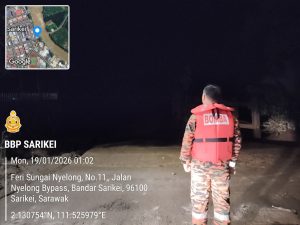SARIKEI: Dua orang anggota bomba telah menjalankan rondaan pemantauan di kawasan feri lama Sungai Nyelong, Jalan Nyelong...